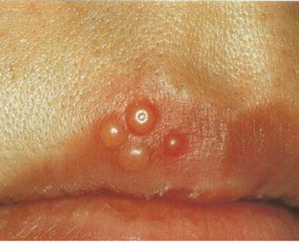 입술 주위에 작은 물집 같은 것이 생기는 헤르페스와 헷갈리기 쉬운데요, 헤르페스는 입 주위에 작은 수포가 동반하고 따끔함과 가려움증을 수반합니다. 이는 피로나 감기 등으로 면역력이 저하되었을 때에 발병하기 쉬우며, 유관상으로 입술주위 수포의 유무로 구각염과 구분합니다.