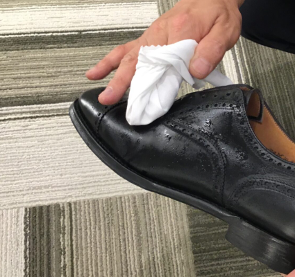 웬만하면 비가 내리는 날에는 이런 재질의 신발 등을 신는 것을 피하고, 빗물등에 젖었다면 마른 수건으로 가볍게 눌러서 겉의 물기를 제거해 주고, 신문지 등을 구겨서 구두안쪽으로 꽉 채워서 신발의 변형을 최대한 막아 줍니다. 신발은 서늘한 그늘에서 말리고, 완전히 마른 다음에는 겉면에 가죽보호왁스 등을 발라 주면 오래 새것처럼 신을 수 있습니다.