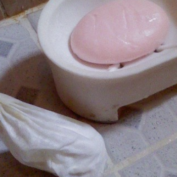 이렇게 모은 비누조각들은 구멍 뚫리거나 못쓰게 된 헌 스타킹 안에다 넣어서 묶어서 쓰면 비누 조각을 알뜰하게 끝까지 쓸 수 있습니다.
