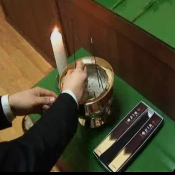 2. 장례식장에 들어서고 상주가 일어서서 조의객을 맞을 준비를 하면, 영정사진 앞에 헌화 또는 분향을 한다음 절을 2번 한 후 반절을 합니다. 이때 절을 할 수 없는 사람은 묵념을 합니다.