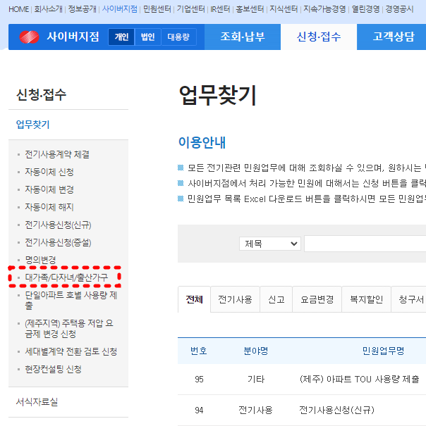 - 신청방법 : 온라인 및 한전고객센터 123으로 전화하여 신청하거나 관할 주민센터 방문하여 신청