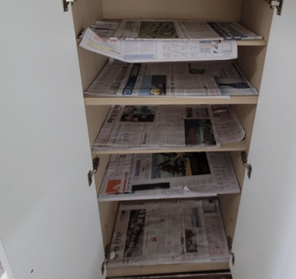 신문지는 장마철 습기 제거뿐 아니라 평소에 신발을 신지 않을 때에도 구겨서 안쪽에 넣어 놓으면 신발관리하는데 아주 용이합니다. 장마철에는 신발장 또한 잘 관리하여야 신발의 변형을 효과적으로 막을 수 있습니다.