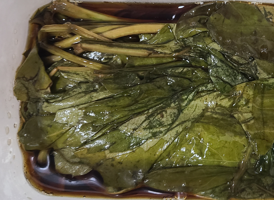 간장에 졸여 장아찌를 만들어서, 돼지고기등을 구워 먹을 때 쌈으로 싸 먹으면 아주 맛있습니다. 개인적으로 명이나물 장아찌보다 좋은 것 같습니다.