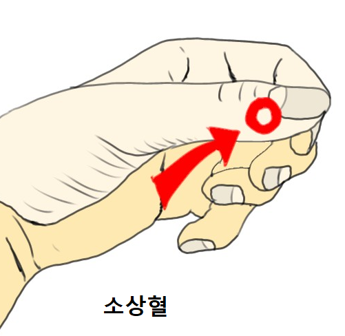 손의 '소상혈'과 '십선혈'을 바늘로 살짝 찔러서 피를 빼주는데, 이때 검붉은 피가 나오면 체한 게 맞고 맑은 빨간피가 나오면 체한 게 아니라고 합니다. 바늘은 알코올 아니 불로 소독한 뒤 이용합니다.